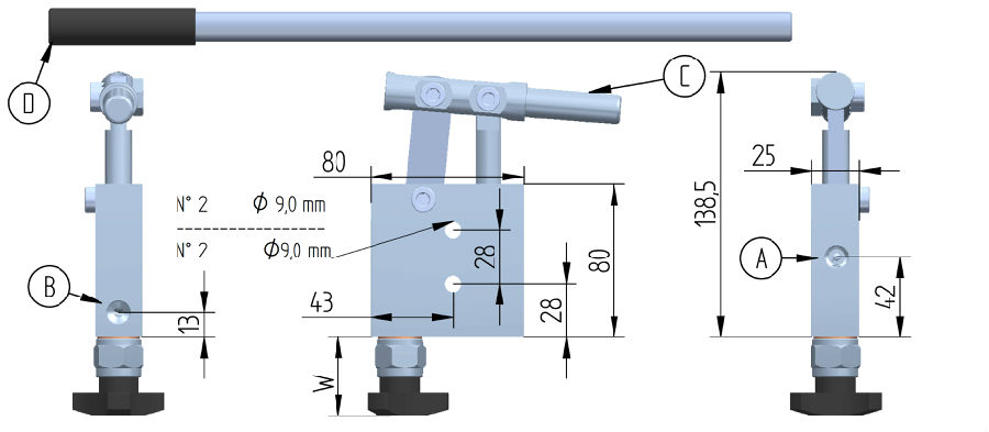 排量(CC) | 最大壓力(bar) | 出油口 | 吸油口 | 手柄連接孔內(nèi)徑C | 手柄 D | 重量 |