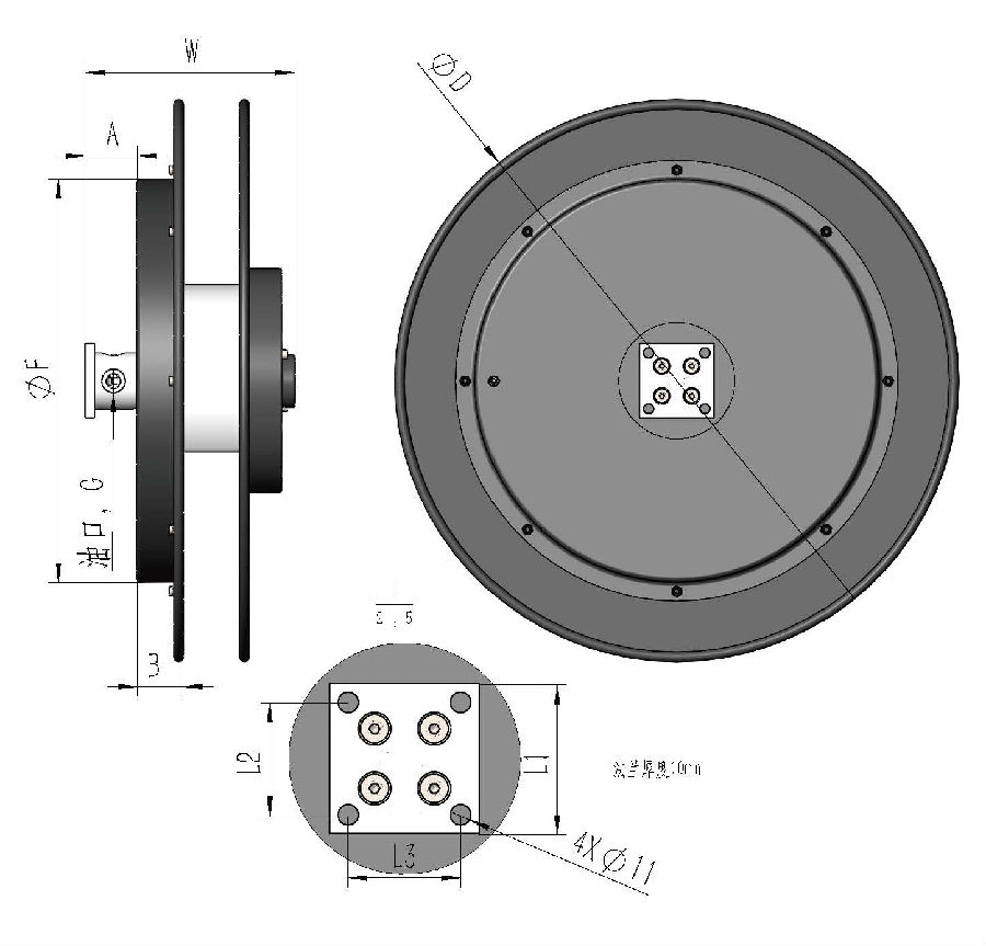 | 1根軟管卷筒 1 Ports hose reel | R:右旋 | Right L:左旋 | Left | 盤子直徑 Flange Diameter | 設(shè)計號 Design | 軟管內(nèi)徑 Inside Hose | 軟管類型 Hose Type |