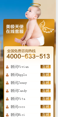 E、 正規(guī)直營(yíng)頁(yè)面把客戶的擔(dān)心直接降到零點(diǎn)! 進(jìn)一步體現(xiàn)我們美極是中美直營(yíng)月子直營(yíng),而且頁(yè)面下面的優(yōu)勢(shì),以一個(gè)奶瓶的形狀親切的展示了美極天使的優(yōu)勢(shì),直扣主題,也從側(cè)面的方式展示了母子相連的溫馨感。